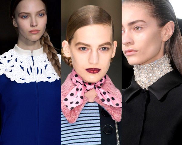 Existe uma grande variedade de gargantilhas esta estação, com detalhes metálicos, elementos de plástico, jóias brilhantes e cintilantes e até mesmo detalhes de peles.